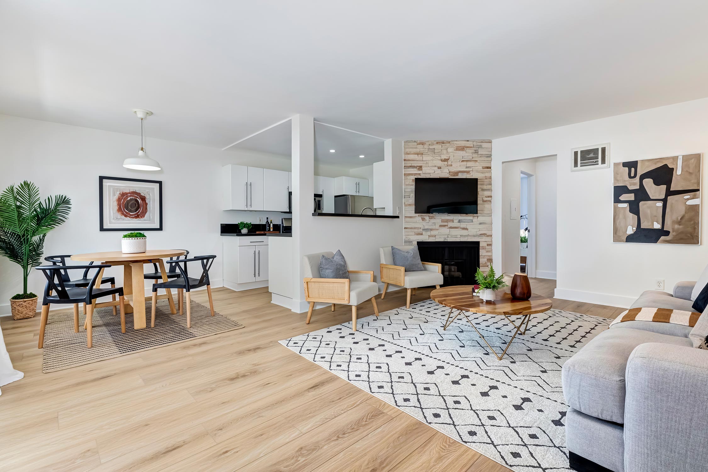 Beautiful one bedroom one bath condo in the sought after West L.A. neighborhood on a quiet tree lined street conveniently located near Santa Monica, St. John's Hospital, Brentwood, UCLA, trendy Sawtelle dining and shopping. This light and bright spacious unit features an open floor plan, brand new wide plank flooring, a sunny patio, updated bathroom, newer stainless appliances, generous closets, additional storage and a charming fireplace completes this fantastic home.